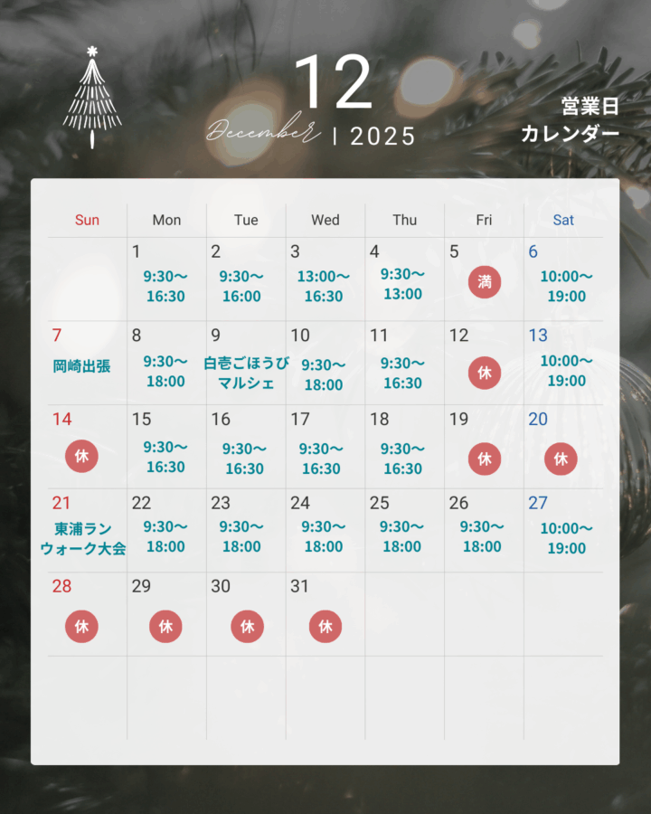 月末は27日(土)まで営業、年明けは5日(月)からの営業開始となります。