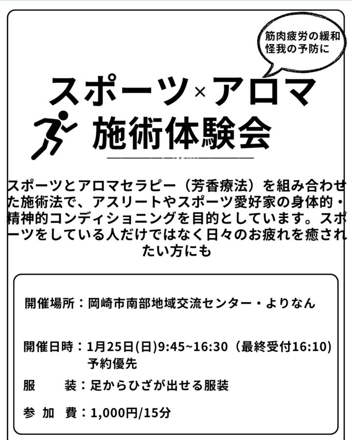 スポーツとアロマセラピー(芳香療法)を組み合わせた施術法で、