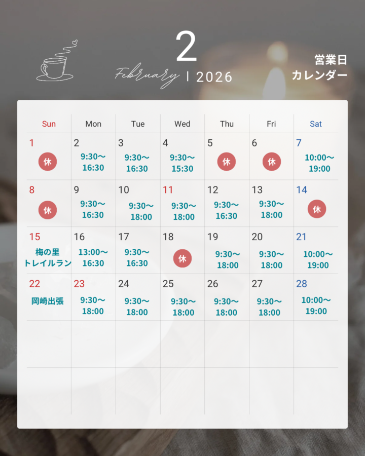 2月の営業日カレンダーです。